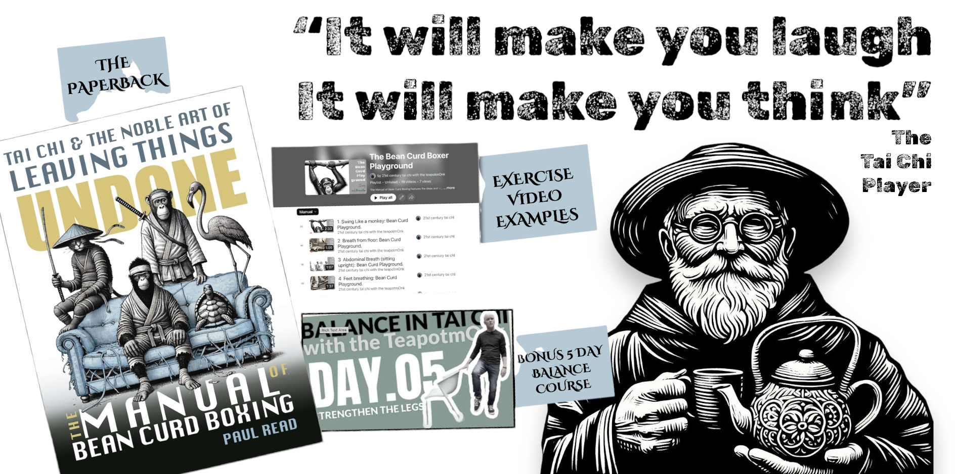 The Manual of Bean Curd Boxing takes Tai Chi off the mountain top and into your living room—no incense, no silk suits. Just clear, simple ideas for moving better, thinking less, and doing what matters.